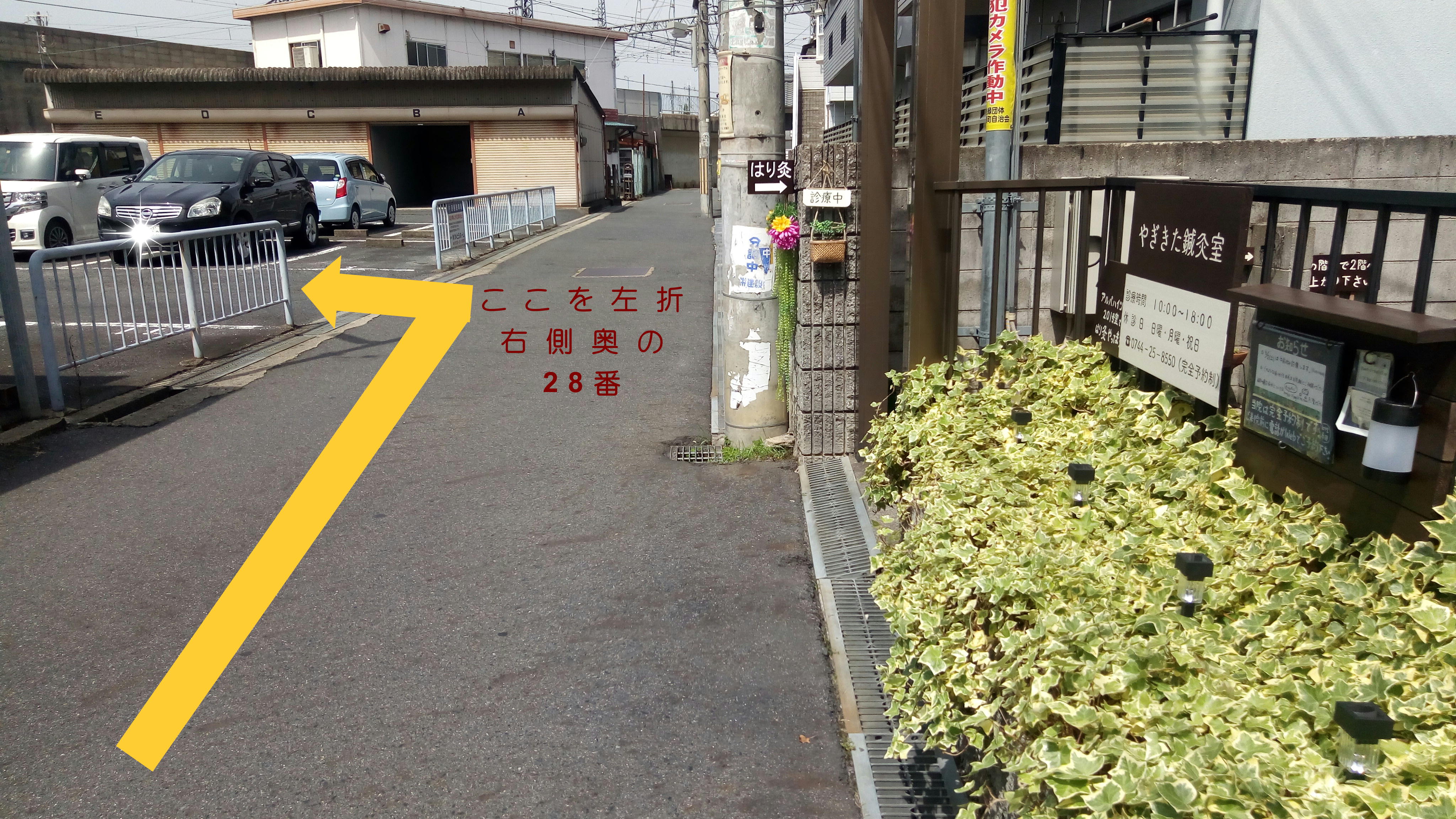 当院から道を挟んで斜め向かいにある駐車場の28番のみ(入って右奥)当院専用です。