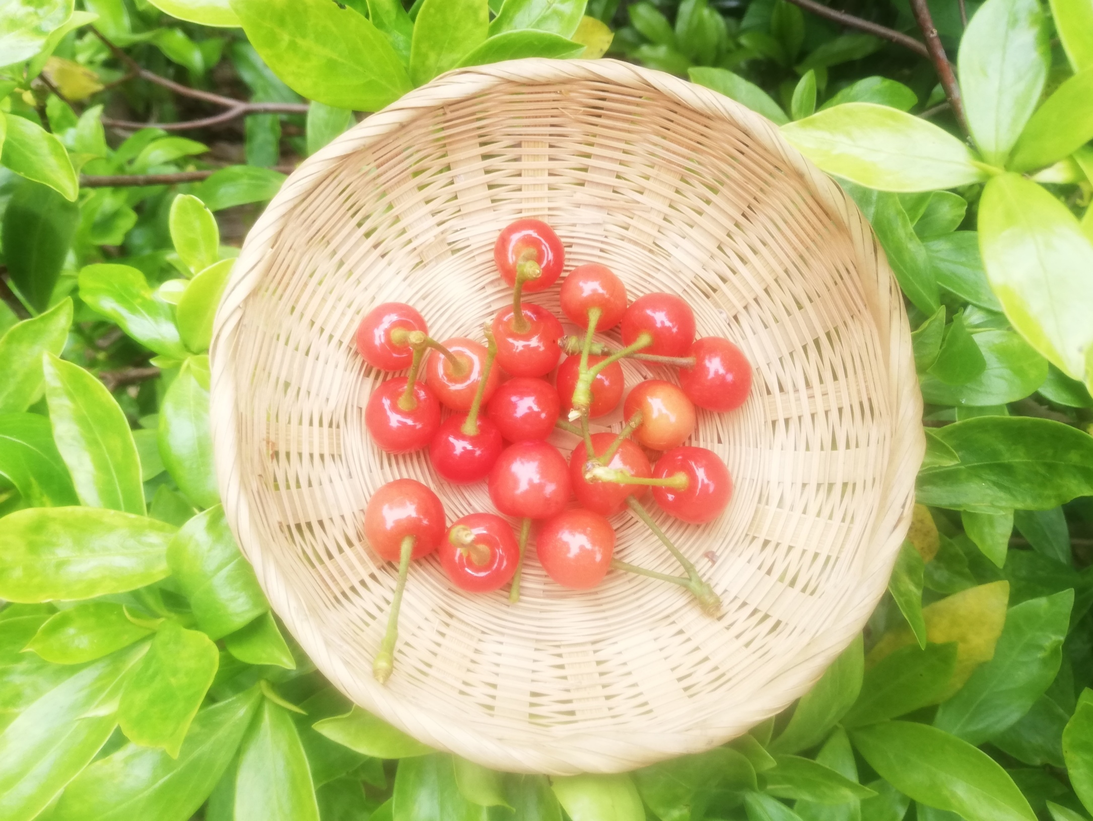 さくらんぼ 自宅のさくらんぼが今年も実をつけてくれました。 木の上のほうの実は鳥さんに食べてもらい 私は葉っぱの間にかくれんぼしていたさくらんぼを少し頂きました。 こんな時でも元気に育ってくれる自然の恵みに感謝です。