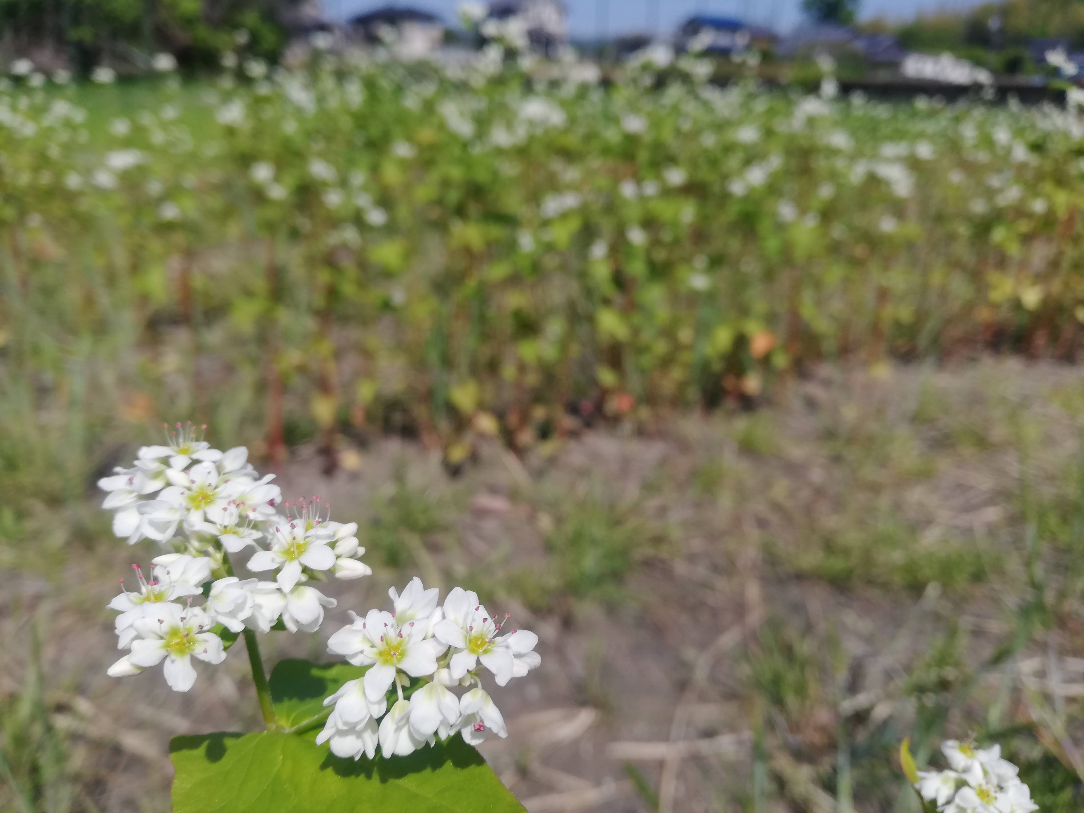 5月 畑に愛らしく咲くそばの花